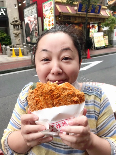 今日は横浜中華街♬ 顔より大きい台湾唐揚げ。スパイシーで美味しかった!